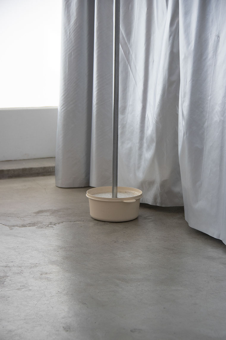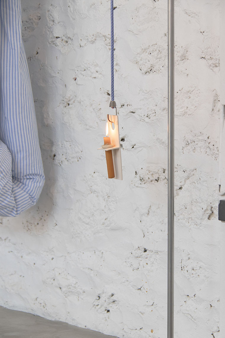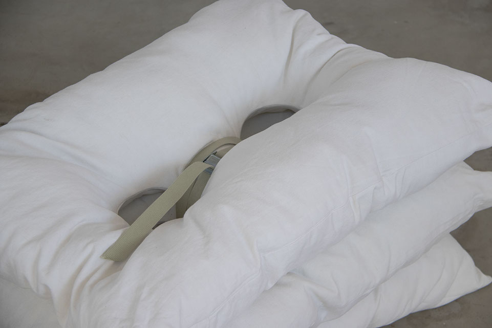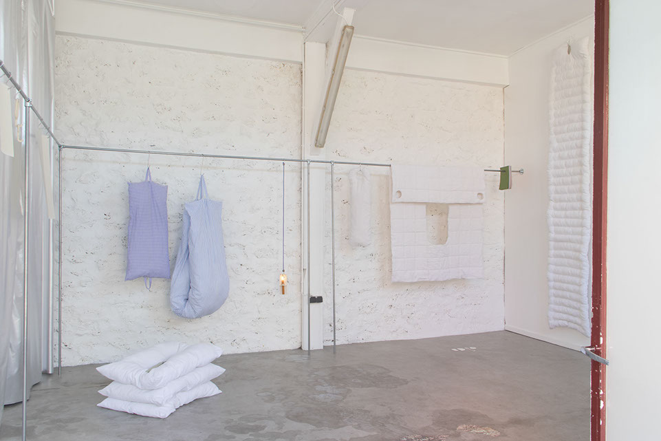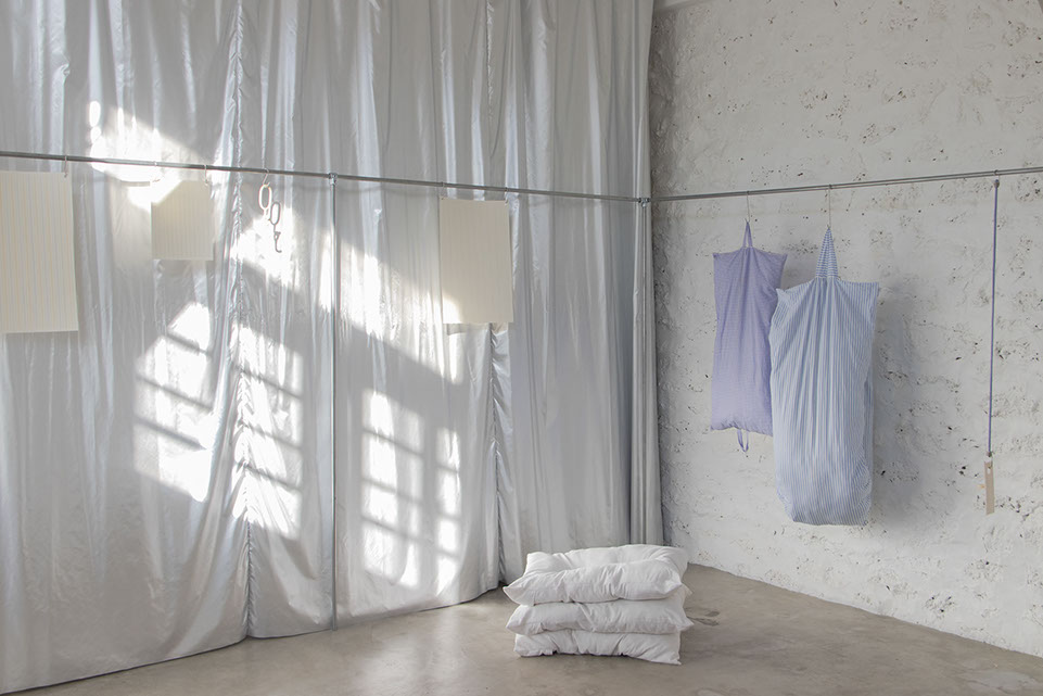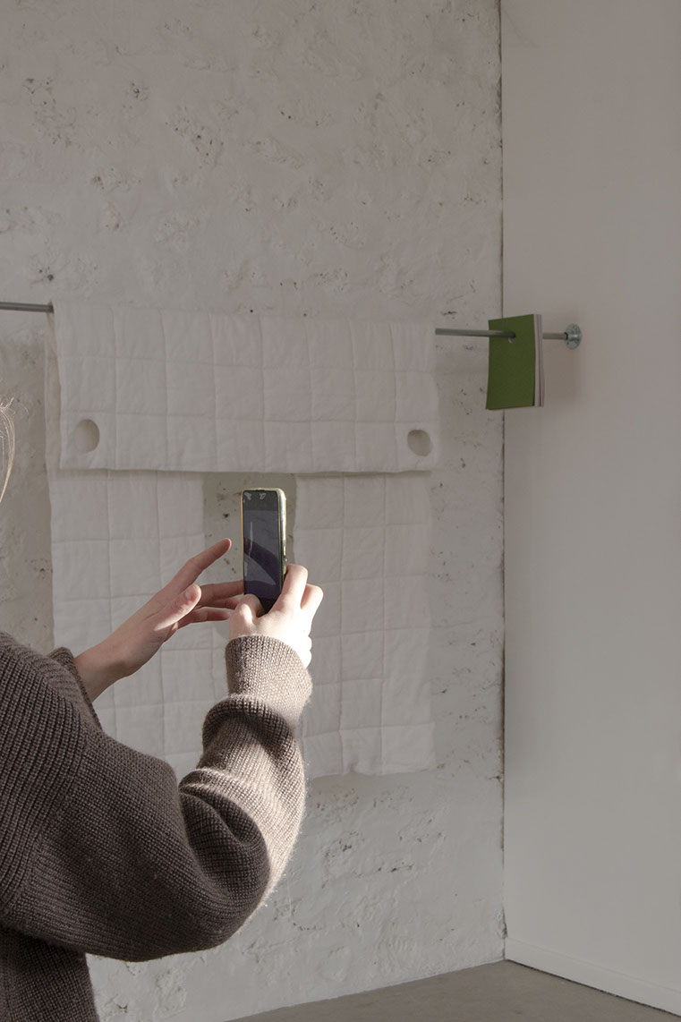 À travers le dessin, la céramique, le vêtement et l’installation, Jeanne déploie une mythologie des objets ambigüe et autoréplicante : la trame se substitue à l’utile, le papier remplace la porcelaine, l’archive a fonction d’usage. Entre les quadrillages molletonnés et les gabarits millimétrés, “le corps de l’homme ne semble plus être là que comme raison abstraite de la forme accomplie de l’objet fonctionnel”.