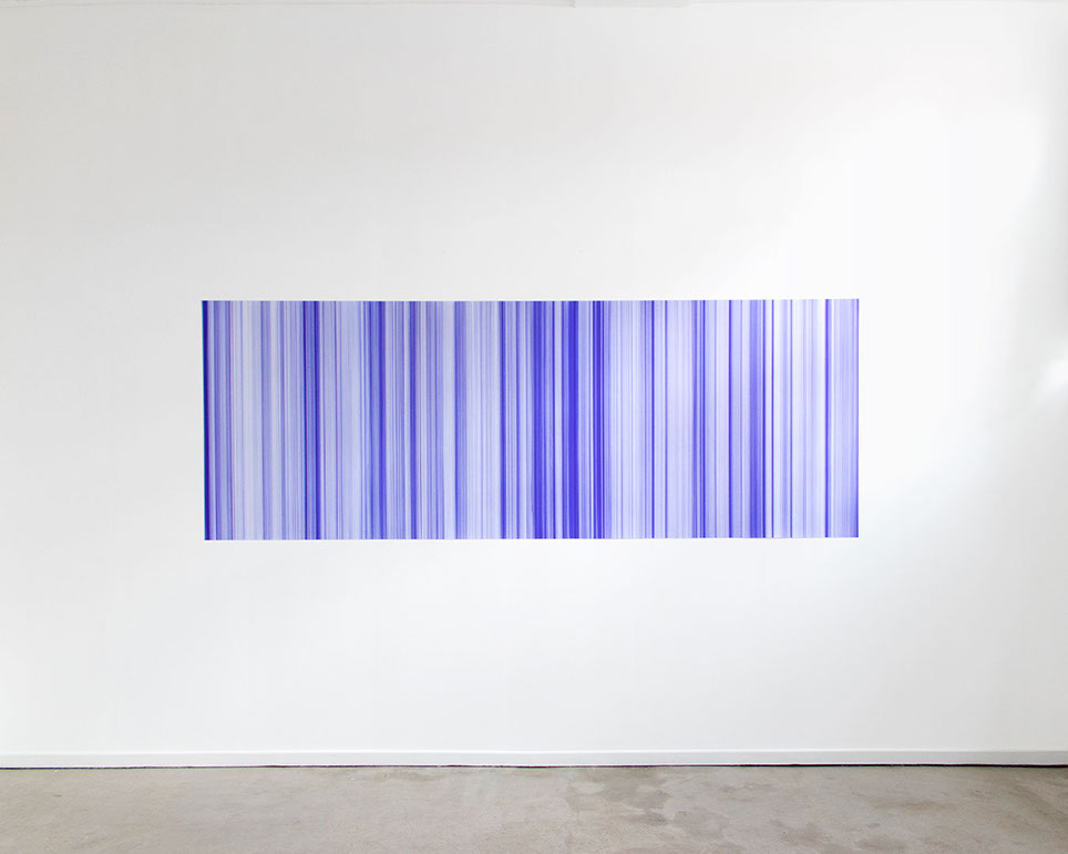 Le format défini de la résidence, contraint dans le temps et l’espace, résonne avec le processus lent et précis de Robinson. Lignes Idéelles propose au visiteur d’envisager la durée de production à la mesure des surfaces vierges que l’artiste remplit au fil de l’exposition-résidence.